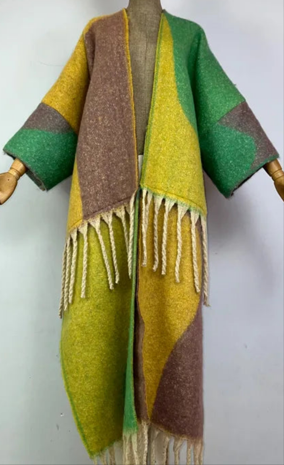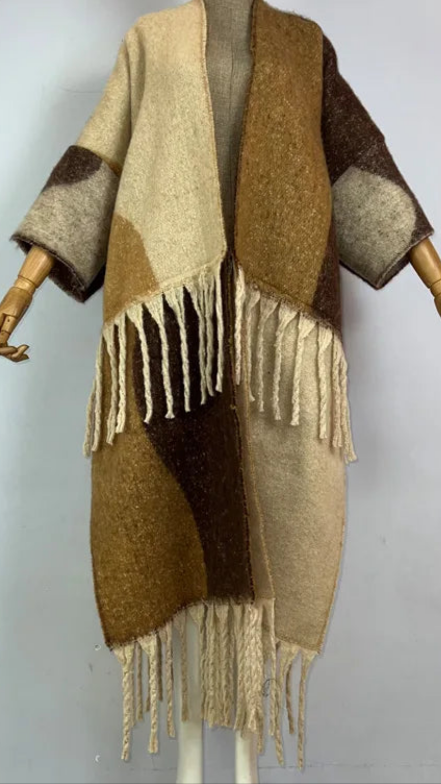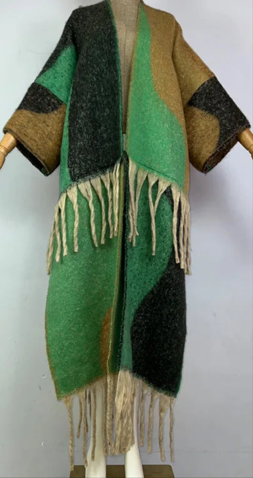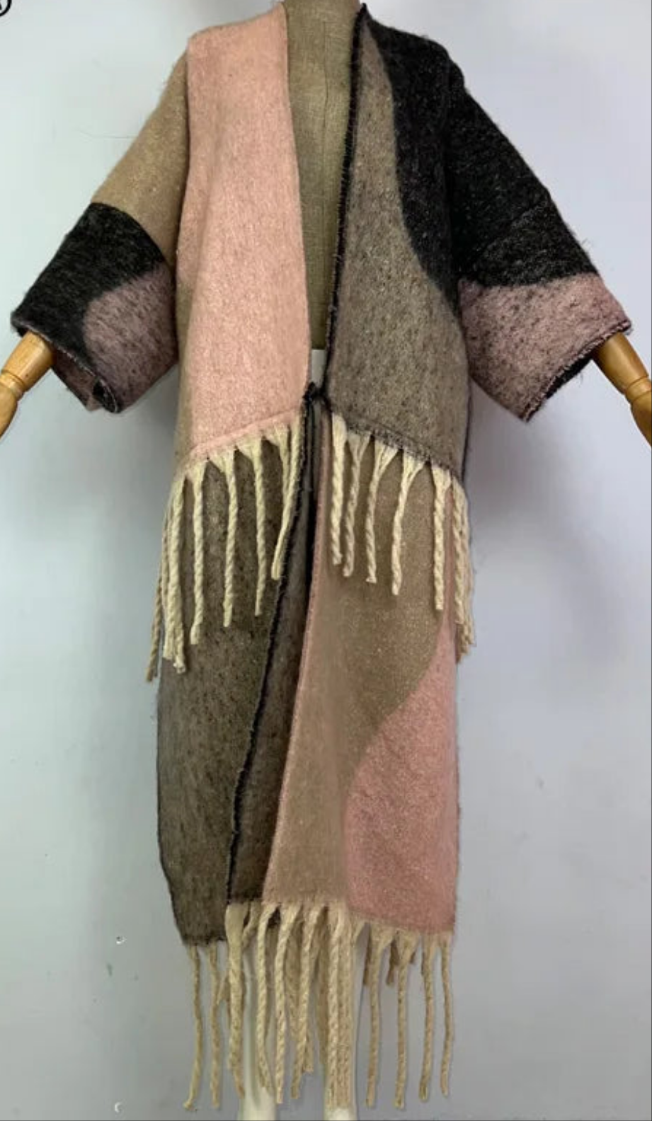 CARDIGAN KIMONO/COAT FOR WOMEN. IT'S A FASHIONABLE STATEMENT PIECE WITH TASSELS IT'S LONG LOOSE & WARM