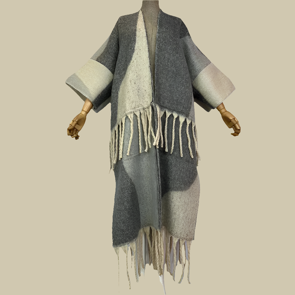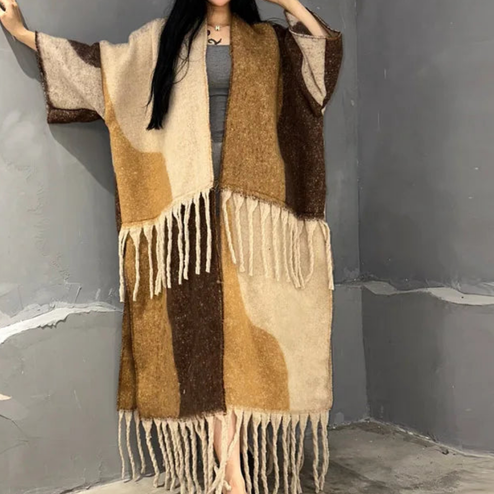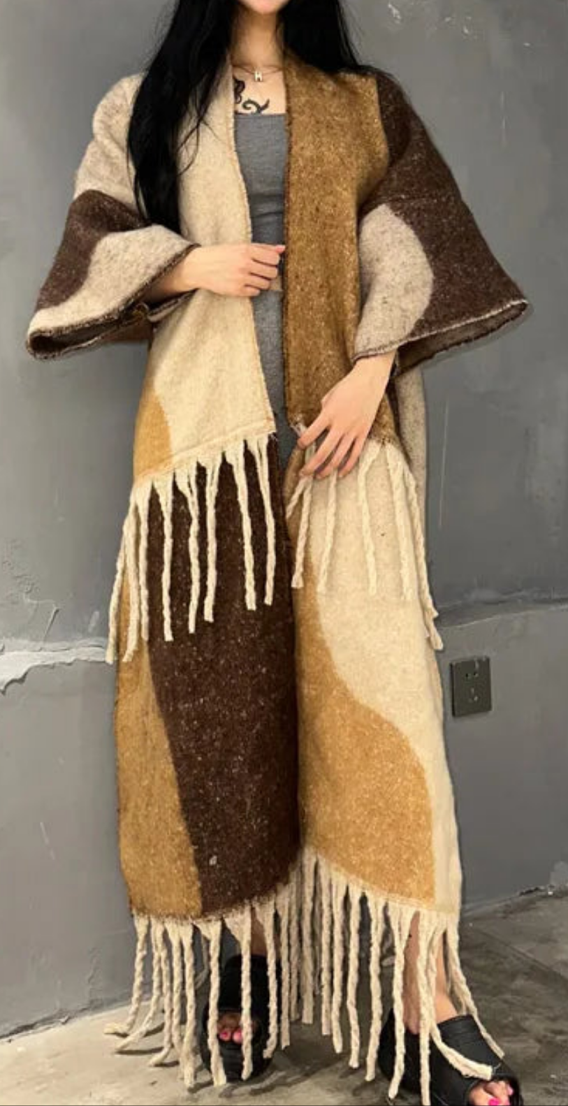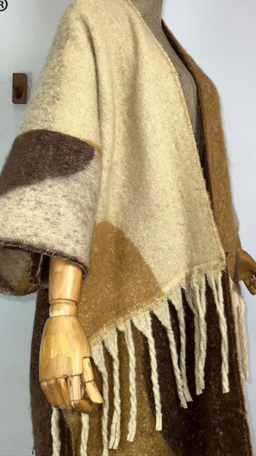 CARDIGAN KIMONO/COAT FOR WOMEN. IT'S A FASHIONABLE STATEMENT PIECE WITH TASSELS IT'S LONG LOOSE & WARM
