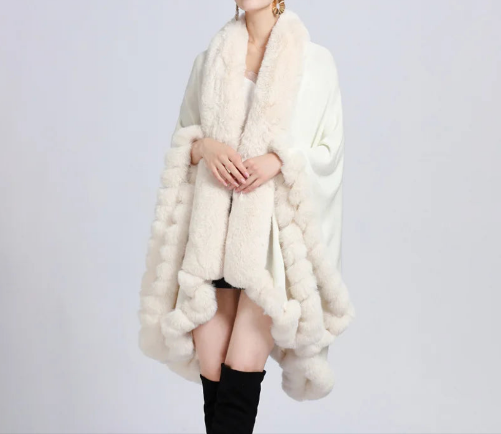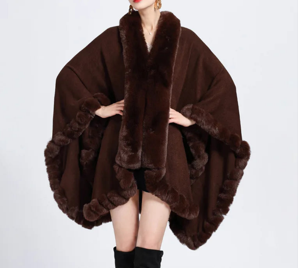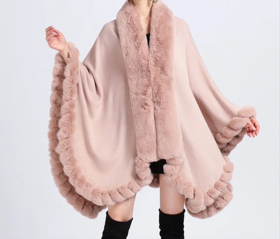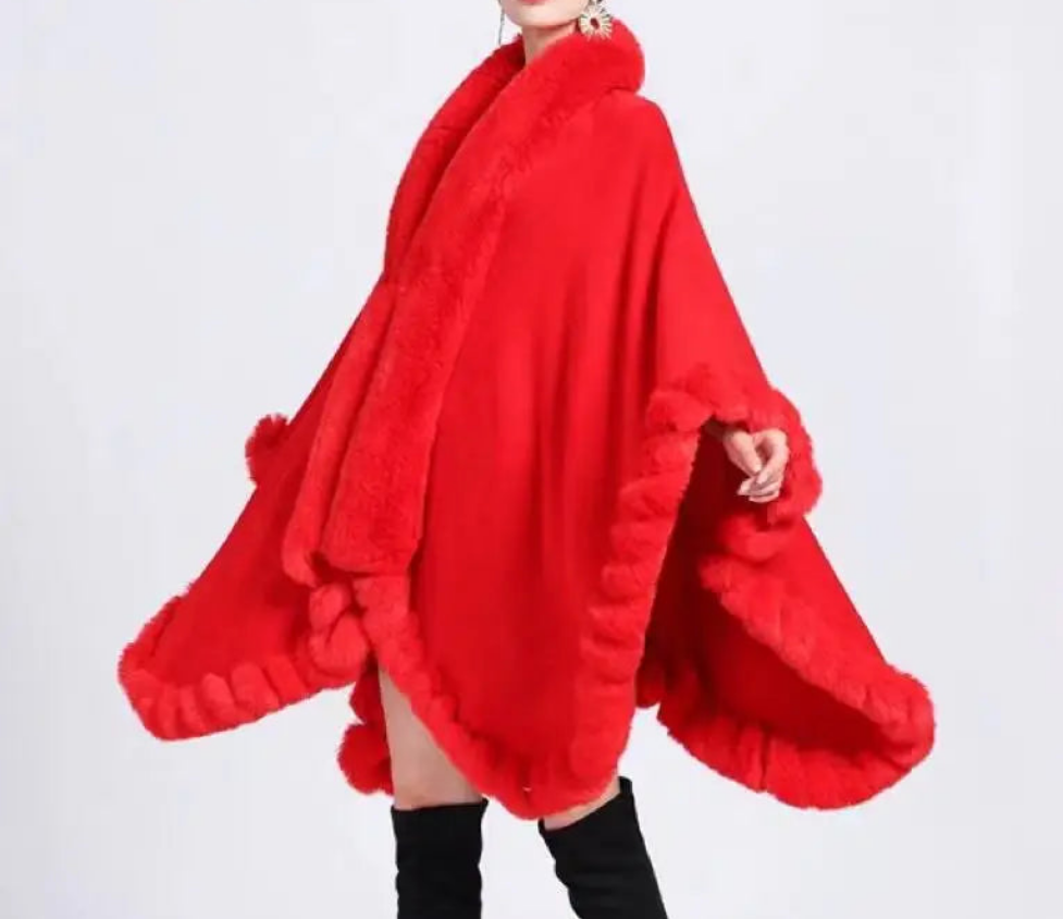 12 COLORS WOMEN SHAWL FAUX RABBIT FUR BIG LONG COLLAR LOOSE PONCHO PENDULUM CAPES