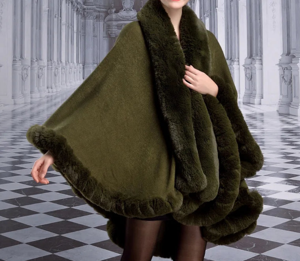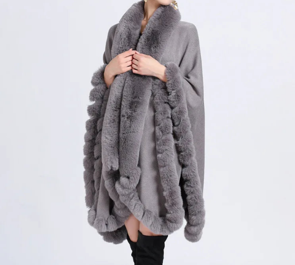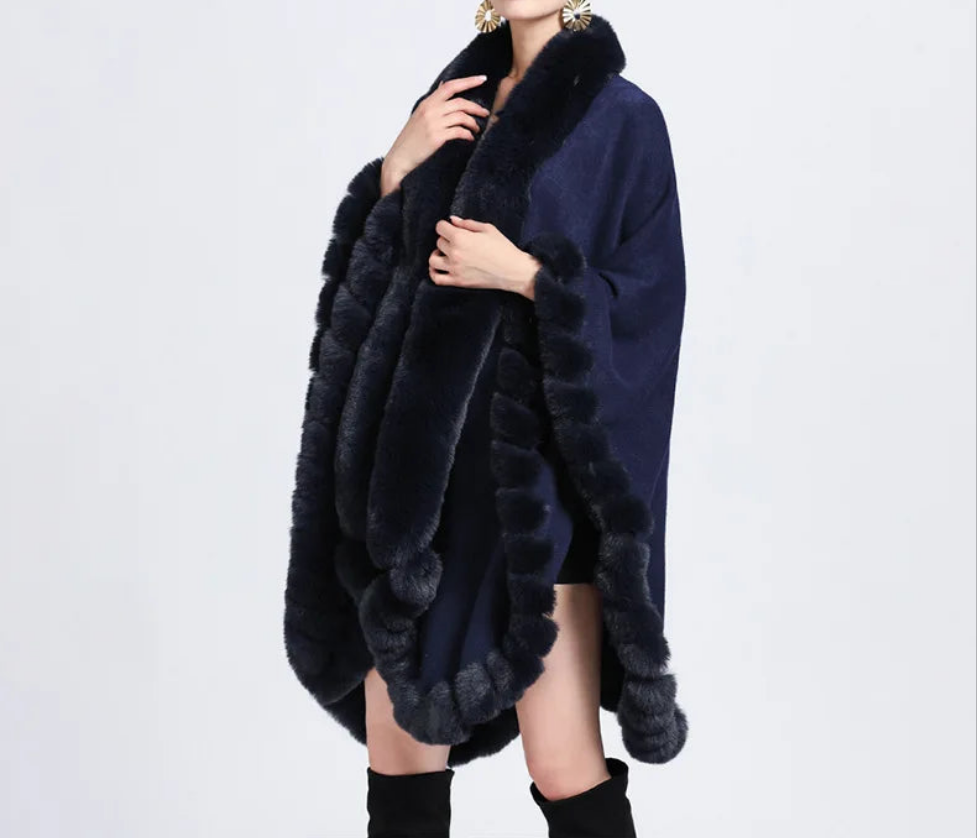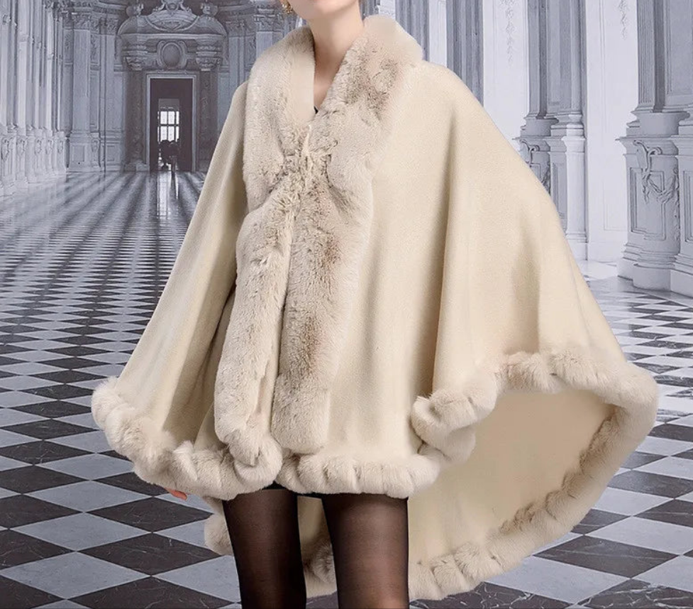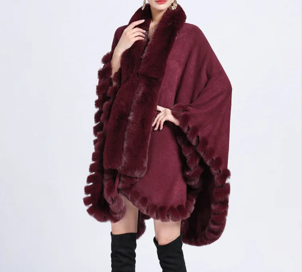 12 COLORS WOMEN SHAWL FAUX RABBIT FUR BIG LONG COLLAR LOOSE PONCHO PENDULUM CAPES