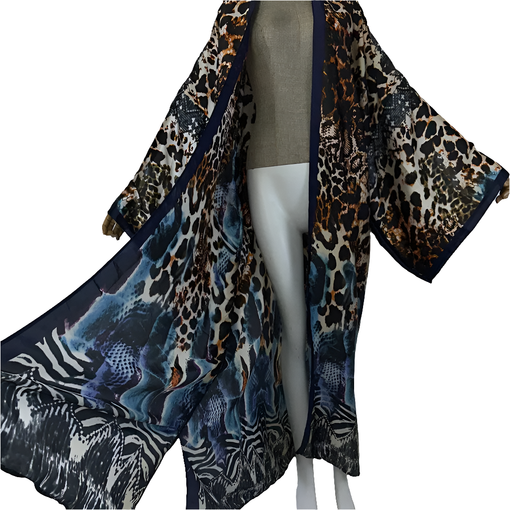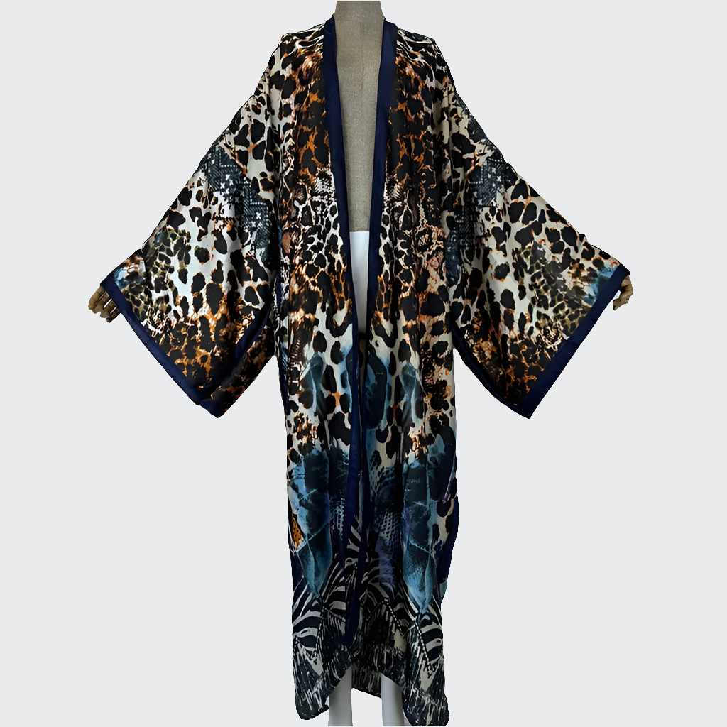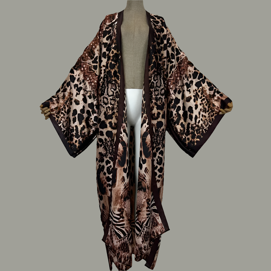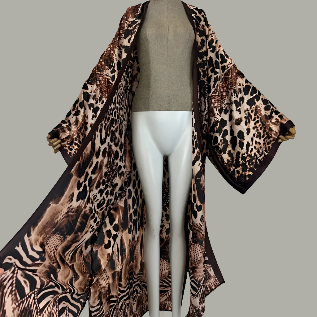 WOMEN BOHO LEOPARD PRINT KIMONO LONG LOOSE FLOWY MULTI-PURPOSE COVER UP ADD THE TO YOUR WARDROBE.