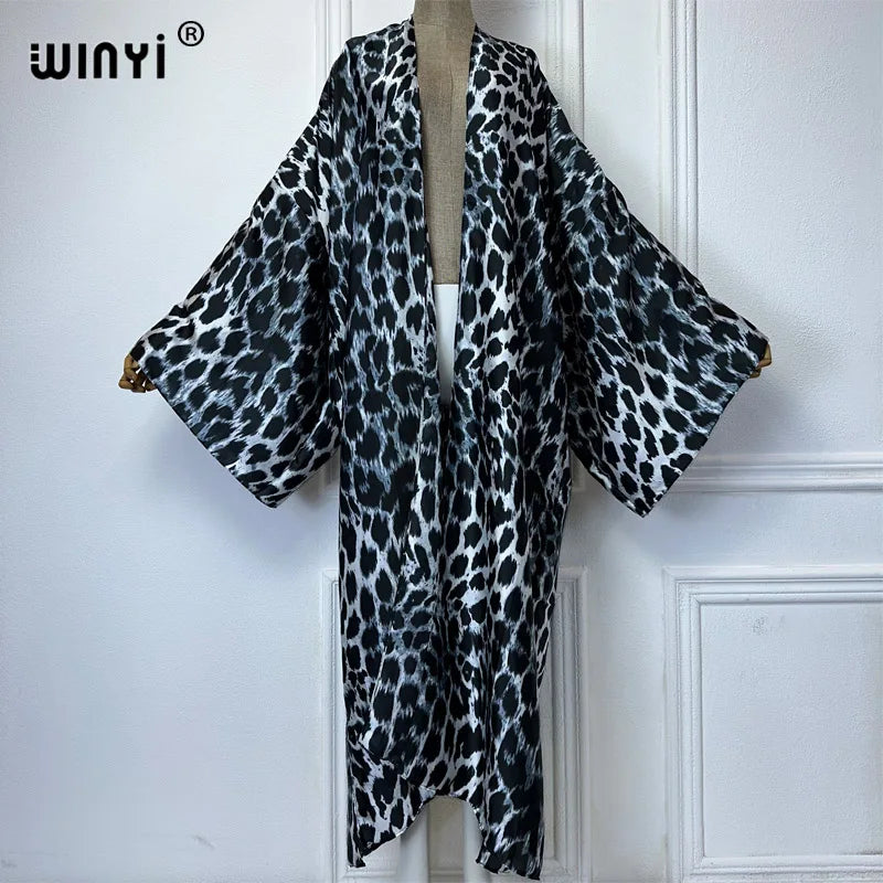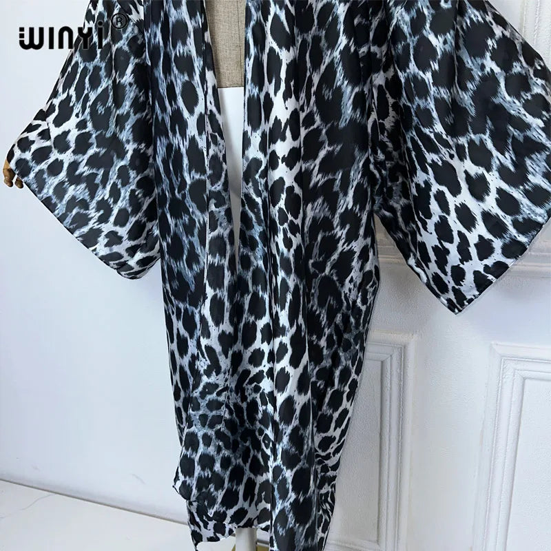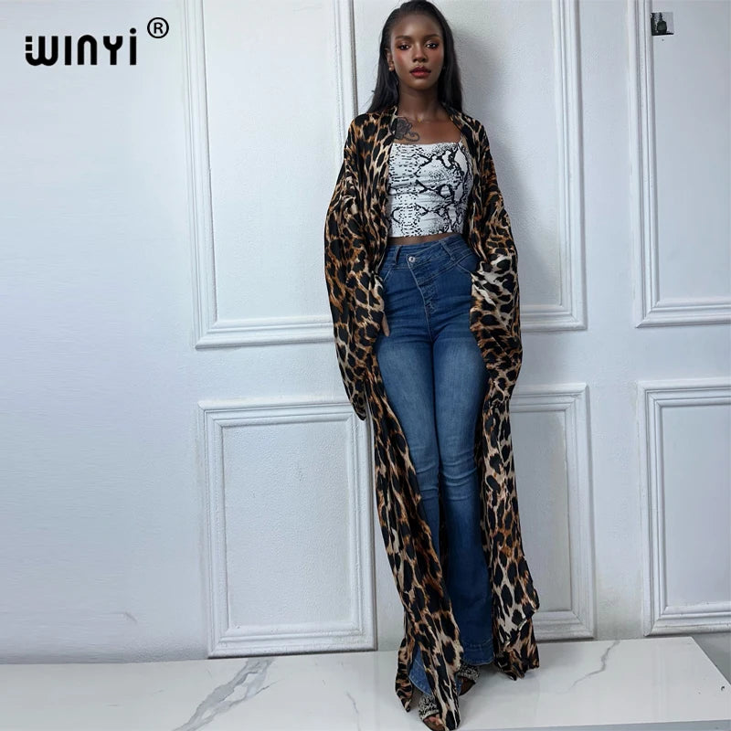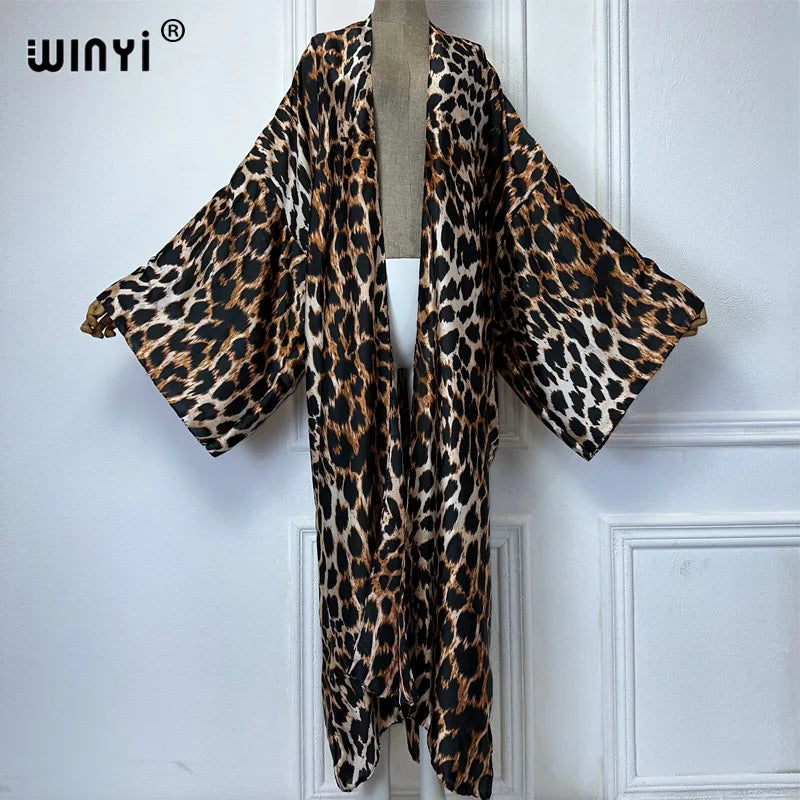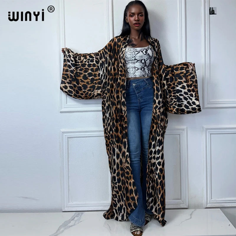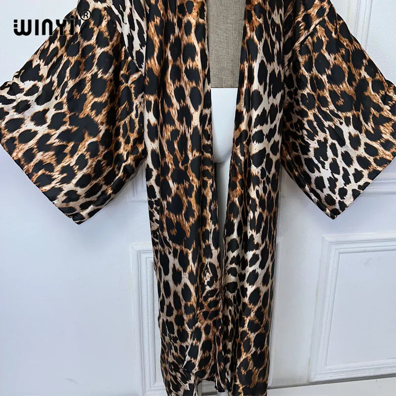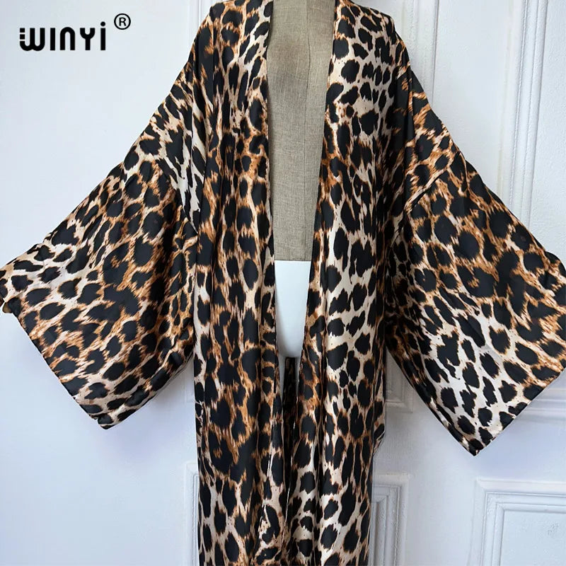 WINYI BOHO LEOPARD PRINT KIMONOS MAXI DRESSES FOR WOMAN CARDIGANS BEACH OUTFITS KAFTAN COVER UP EVENING DRESS LONG DOWN COAT